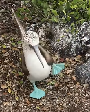 * 하늘색 발은 암컷에게 구애할 때 중요한 수단이다. 수컷이 발을 번갈아 들며 춤을 춘다.