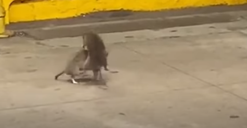 뉴욕 지하철 브루클린 역에서 쥐싸움이 벌어졌다.