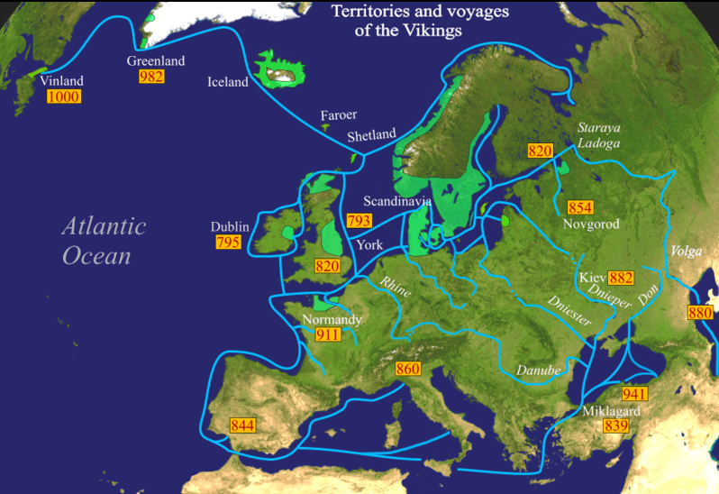 1000년경 바이킹족인 비아르니 헤리올프손(Bjarni Herjólfsson)이 북미 대륙을 발견했다. 콜롬버스보다 약 500년 빠르다. 하지만 원주민과의 마찰, 소(小)빙하 시대 도래로 얼마 못가 철수한다.