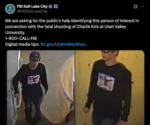 미 FBI는 11일 찰리 커크 총격 사망 사건의 관심 인물(person of interest)을 수배했다.