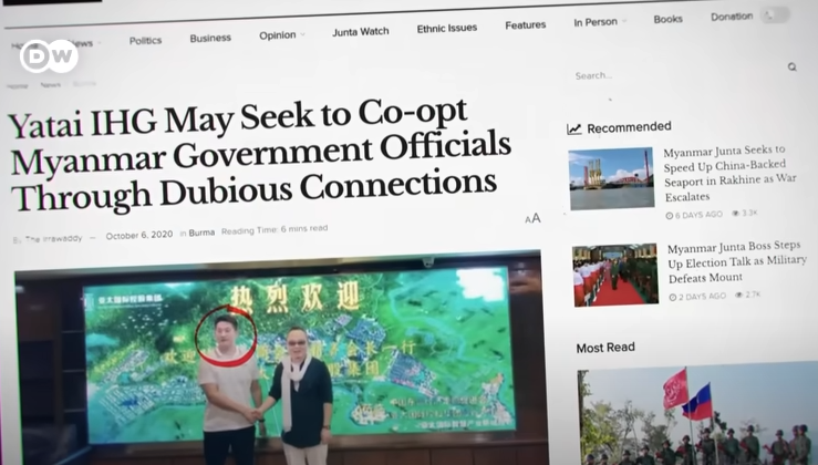 이곳 카렌 주(국경 인근)에서는 몇 년 만에 신도시들이 생겨났고, 중국 고객을 위한 아시아의 새로운 도박 여행지로 떠올랐습니다. 본토 중국에서는 도박이 불법이고, 동남아 대부분 지역에서도 그렇지만, 내전으로 피폐해진 이 지역에서는 아무도 감시하지 않습니다. 이 홍보 영상은 국경의 거대한 도박 도시가 될 투자의 비전을 보여줍니다. 여기서 중국 사업가 스즈지앙이 프로젝트에 서명하는 장면이 보입니다. 옆에는 전(前) 반군 출신인 국경수비대 책임자가 서 있습니다.