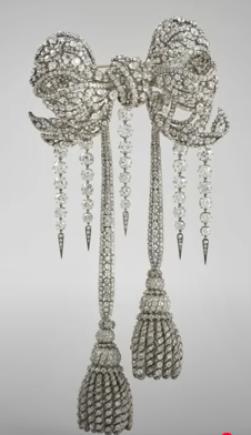 화려한 다이아몬드 리본 브로치는 다이아몬드 4000개 이상이 박힌 커다란 다이아몬드 벨트의 일부다. 외제니 황후가 리본만 떼어 브로치로 착용했다.