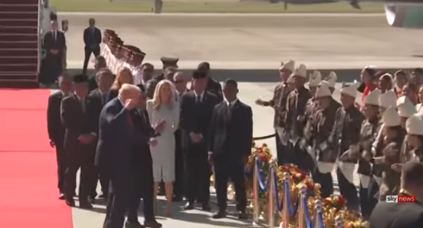 트럼프 대통령은 말레이시아 악단이 연주하는 음악에 맞춰 잠시 흥겹게 춤을 추고, 성조기와 말레이시아 국기를 양손에 들고 흔들었다.
